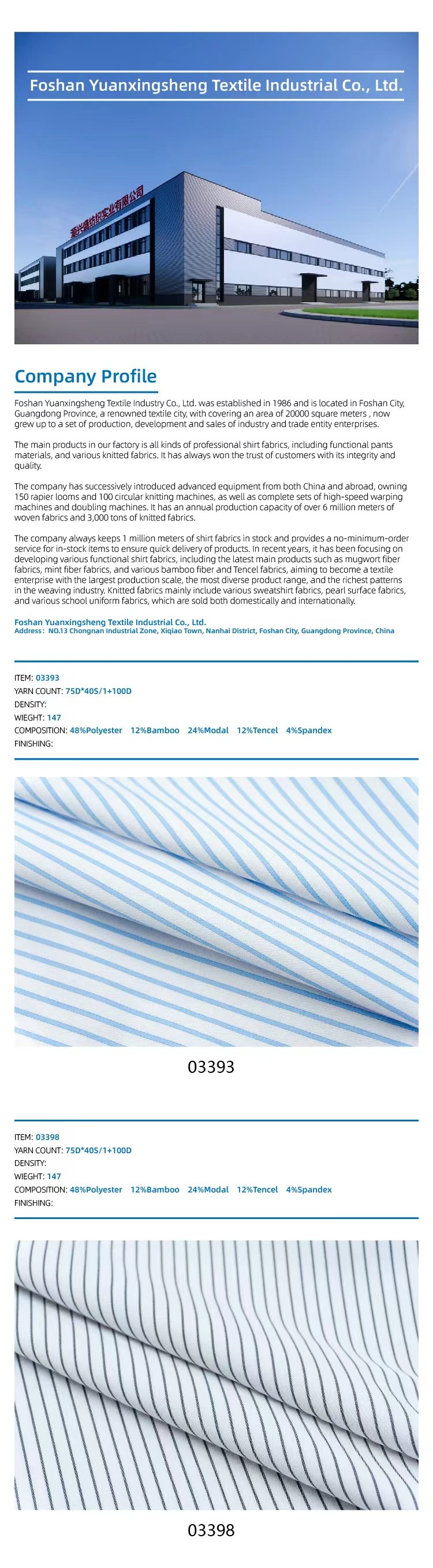 - Foshan Yuanxingsheng Textile Industry Co., Ltd.